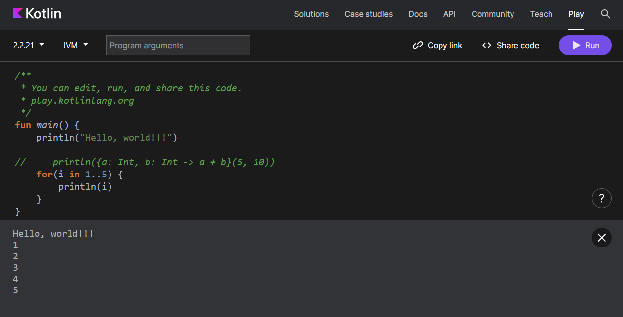 Kotlin Playground: Edit, Run, Share Kotlin Code Online