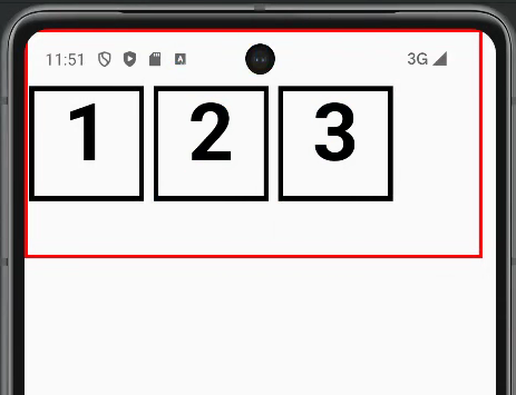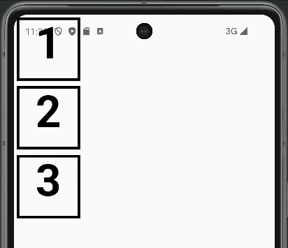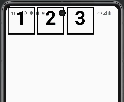 다음 실행결과를 보면 1, 2, 3 TextCell 이 가로방향으로 나열되어 있음을 확인할 수 있다. Row 대신 Column 을 사용할 경우, 쉽게 상상할수 있듯이 1, 2, 3 TextCell 이 세로방향으로 나열된다.