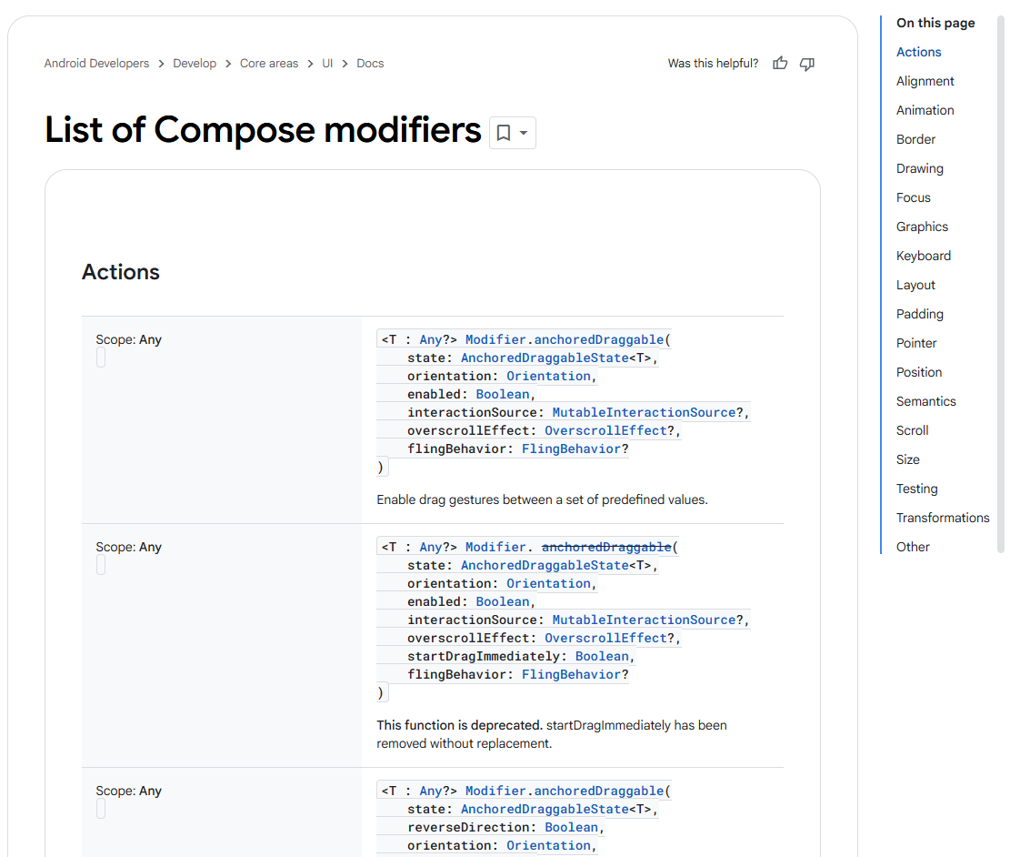 기본적으로 젯팩 컴포즈에서 제공하는 Modifier 의 메서드는 매우 많다 (100여개) 구글 개발자 싸이트에서 확인할 수 있다.