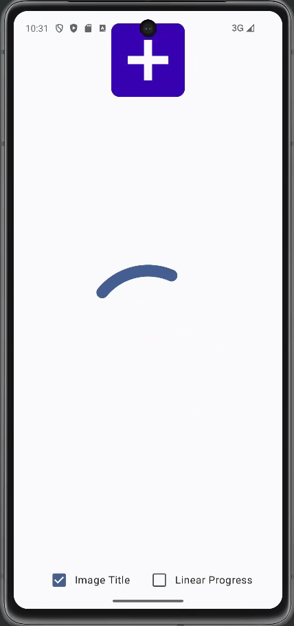 실행결과는 다음과 같다. Image Title 체크버튼의 활성화 여부에 따라 앱 상단에 이미지 또는 텍스트가 컴포넌트가 놓이게 된다. 또한 Linear Progress 체크버튼 활성화 여부에 따라 앱 중앙부분에 프로그레스바가 직선 또는 원형의 컴포넌트가 놓이게 된다.