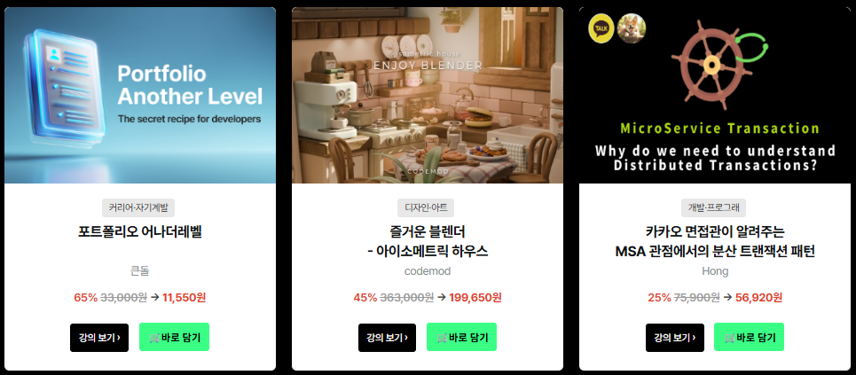 아래 언급한 강의외에도 인프런 사이트에 가면 더 많은 강의를 살펴볼 수 있으니, 직접 검색해서 살펴보면 좋겠다.