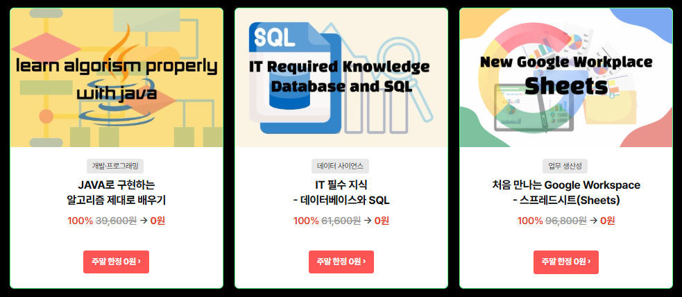 오늘 내일 주말한정(11/29~30) 무료로 제공되는 강의는 3개 !! (총 198,000원에 해당하는 강의)